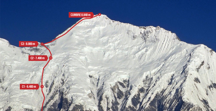 Habían pasado 2 semanas desde la llegada al CB. Hubo cambios el plan original ya que las condiciones del tiempo se habían comportado muy favorables, por lo que se decidió que en el proceso de montar el C2 (7400m) y el C3 (8000m), se aprovecharía el impulso para hacer un ataque a cumbre.